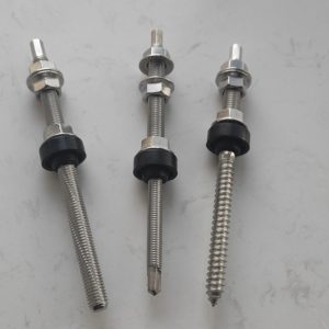 Os parafusos son parafusos resistentes que se usan para fixar os paneis solares a vigas ou postes de madeira. Están deseñados para proporcionar un apoio forte e evitar que os paneis se flanqueen ou caian da estrutura de montaxe.